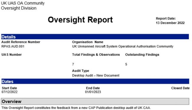 Oversight report of CAA CAP 722H